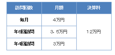 これに特殊事情(医業収入の金額、訪問交通費など)を加減して顧問料を決めさせていただいております。